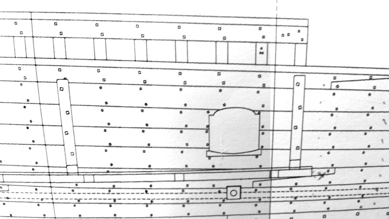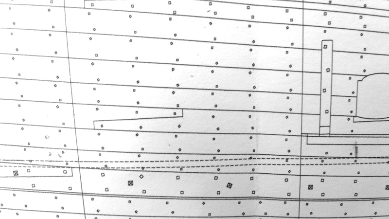 Układ desek pokładu i treenail (kołkowanie) dla ST przygotowany przez Emiliusa