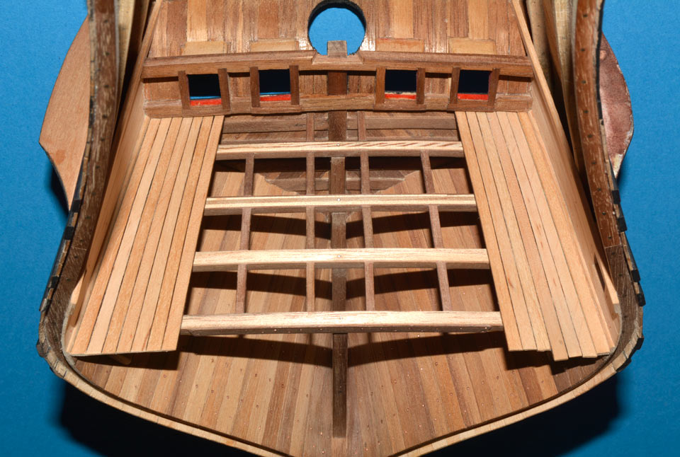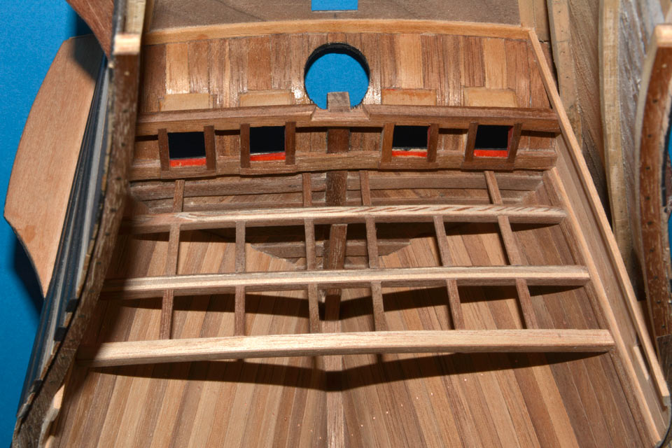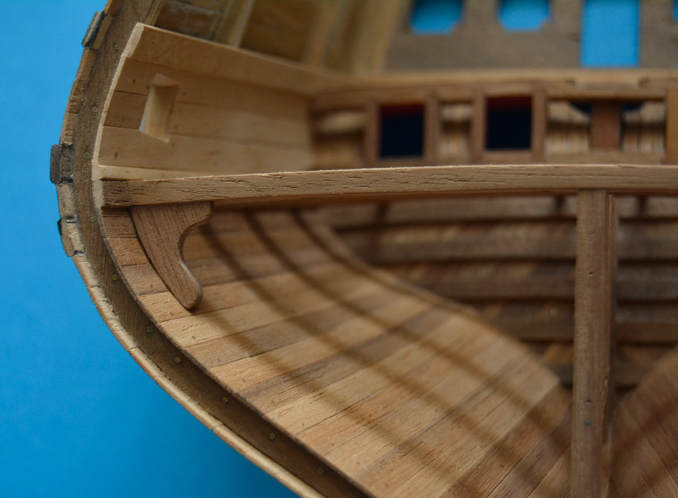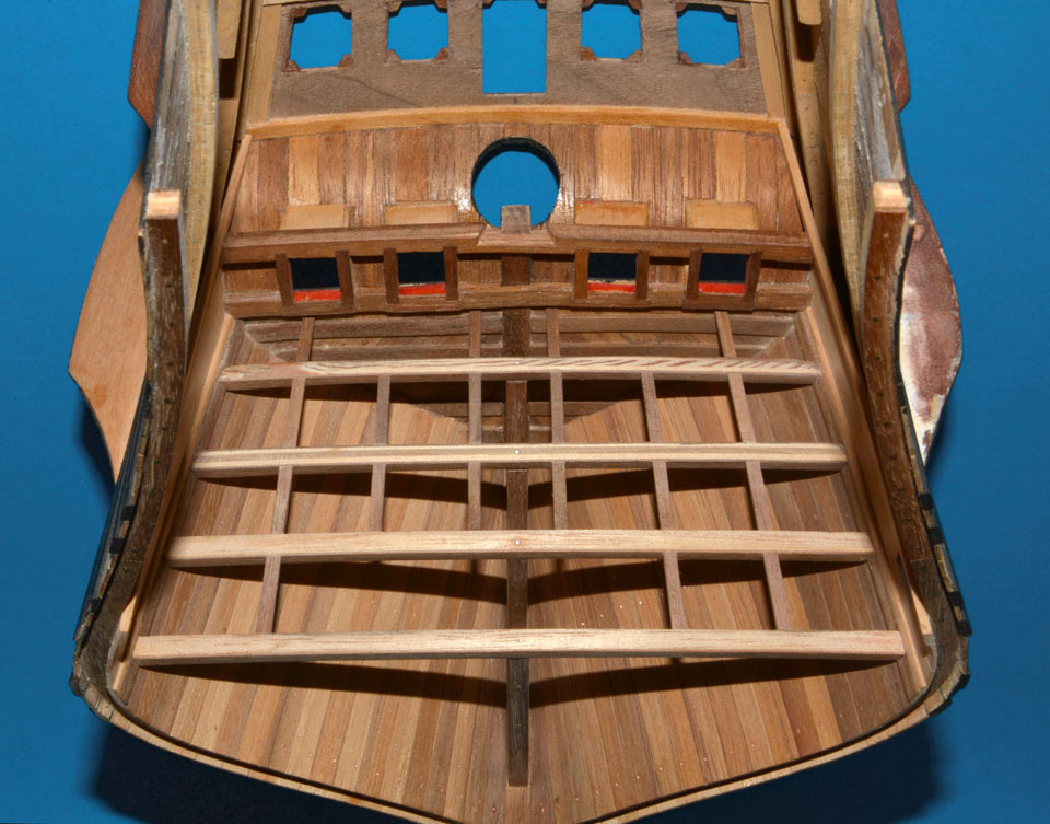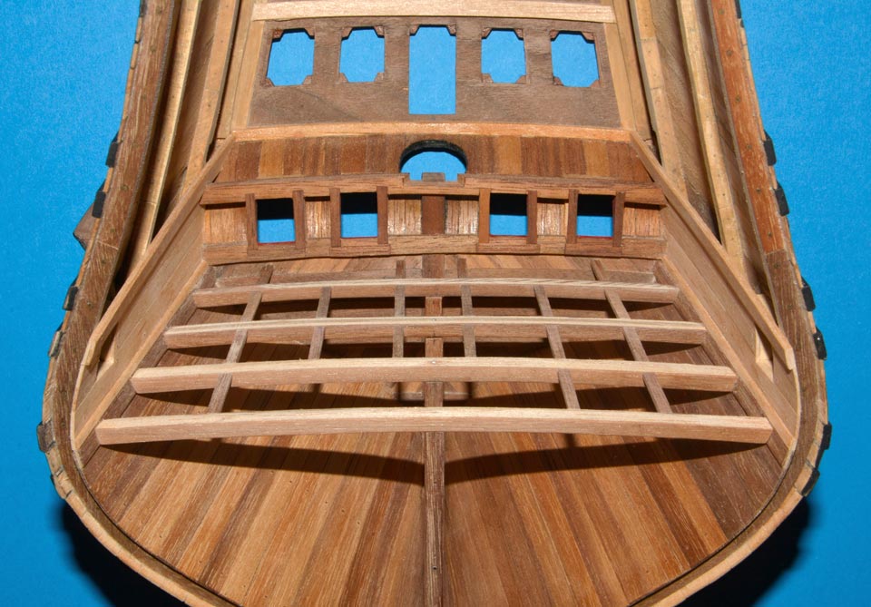 Dopasował i wkleiłem kolejne pokładniki - jako, że będzie widać spód pokładów, na wzór konstrukcji zacząłem robić "kratownicę" (będzie to jednak uproszczenie bez węzłówek poziomych).